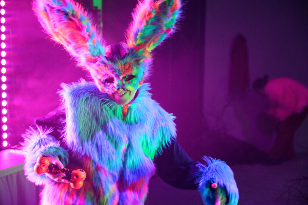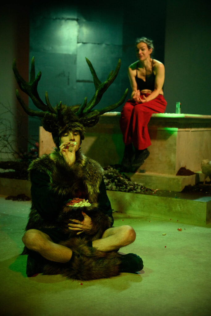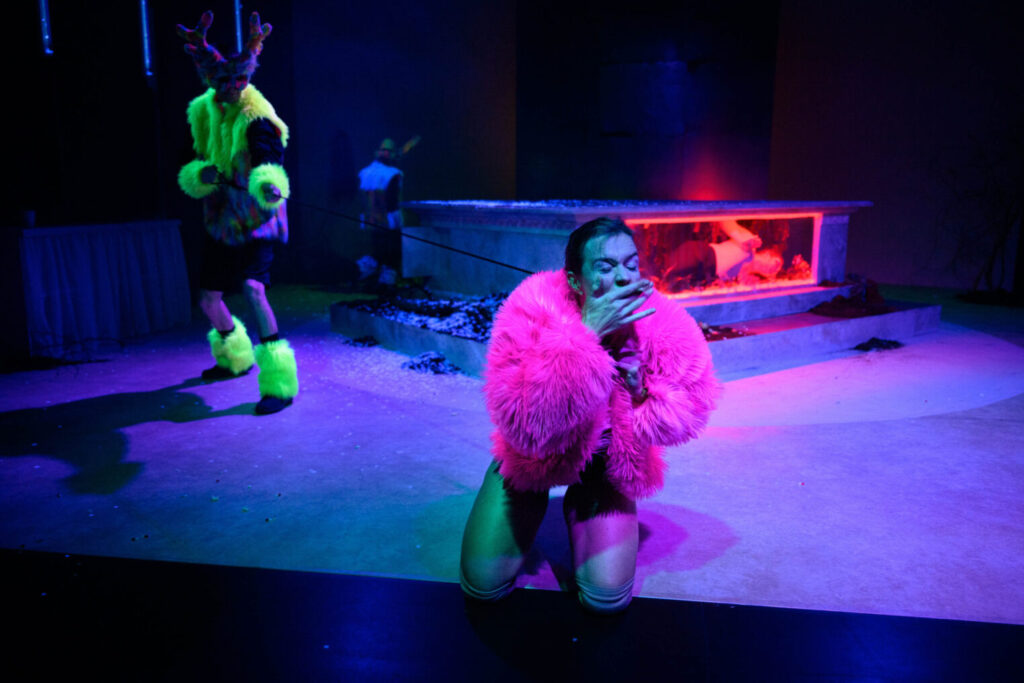 De mest rørende og velfungerende momenter i Jesper Michelsens iscenesættelse lå i samspillet mellem de fire skuespillere. Andreas Flodin Pedersen, Janick Pihl Nielsen og Michele Rasmussen optræder som fysiske manifestationer af kvindens psykose og hallucinationer. Dette greb virker af og til lidt forudsigeligt og fortærsket, ligesom udfoldelsen af en psykose gennem dyremasker, stroboskoplys og ubehagelig techno føles som noget, man har set før, men ind i mellem forenes skuespillerne i enormt stærke billeder og gribende momenter. F.eks. når dyremaskerne skrælles af, og kvinden ser sine dæmoner i øjnene, gives der plads til ømhed og skrøbelighed, der er med til at bringe et element af håb ind i den ellers brutalt håbløse forestilling.
