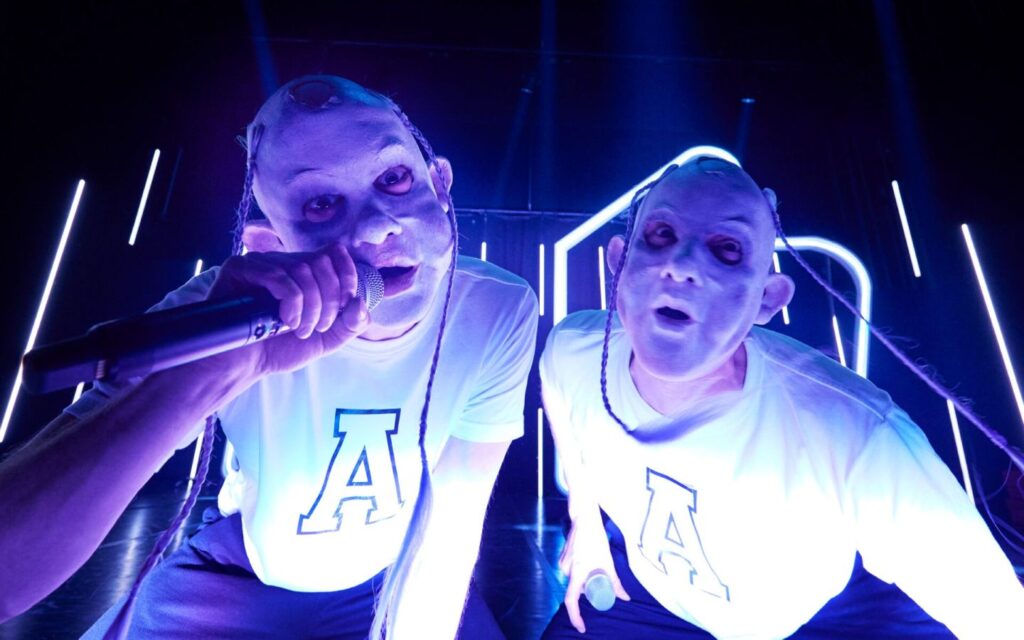 En enkelt gang tændes lyset på publikum, og Kimmie Liv spørger os, hvor høj vores skærmtid er. Spørgsmålet besvarer hun selv, men det peger på en dobbelthed i publikums funktion. Vi er både publikum og forbrugere i Albert Was Here, men det bliver også et billede på forestillingens ubeslutsomhed. For det er lidt som om, at den ikke helt kan beslutte sig for, om den mest vil være en hyldest til Albert eller et indspark i debatten om sociale medier. Det skaber en tvetydighed: Hvad er det, vi skal tage med, når vi går derfra?