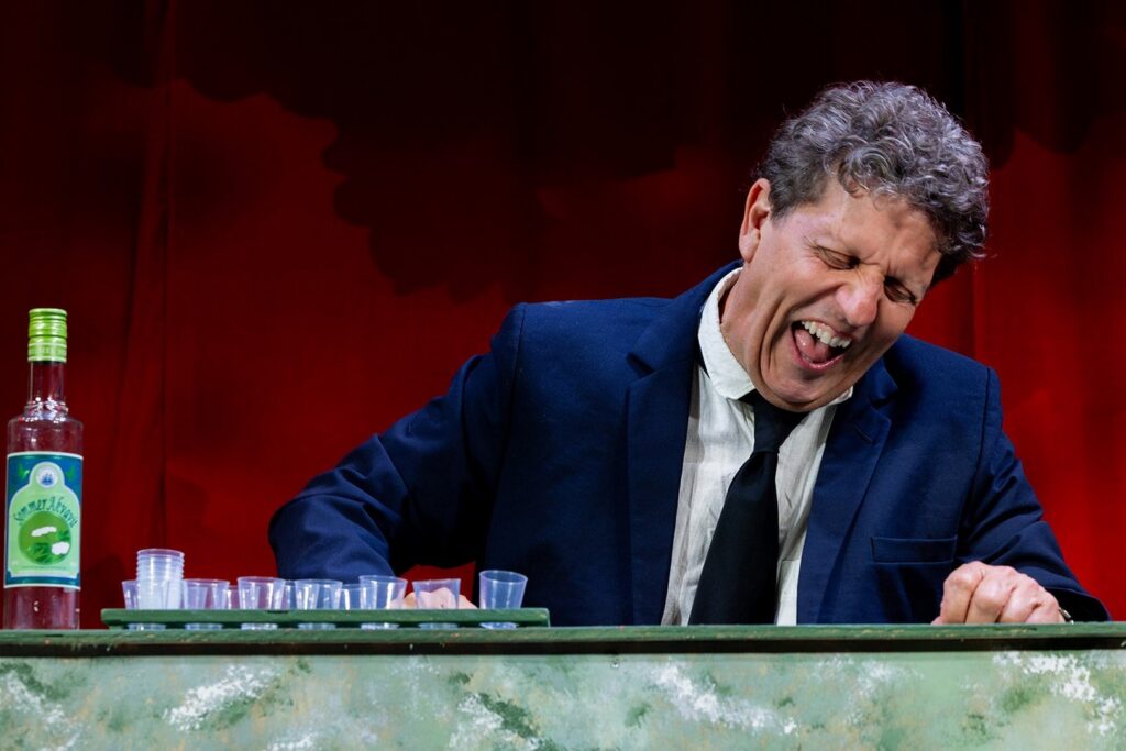 Søren Hauch-Fausbøll mestrer menneskets udvikling – eller måske nærmere afvikling – når det testes, hvad der sker, når stigende mængder alkohol indtages i ”Karl Frandsens lange rejse” med tekst af Ditte Hansen og ham selv. Morsomt, tankevækkende og ganske absurd guider Hauch-Fausbøll sammen med Reynberg os gennem de forskellige fuldskabsniveauer. Allerbedst er han dog som ordløs klovn sammen med Rødbroe, hvor de to elegant og virtuost viser os vigtigheden af venskabets til tider uransagelige og drillende veje.