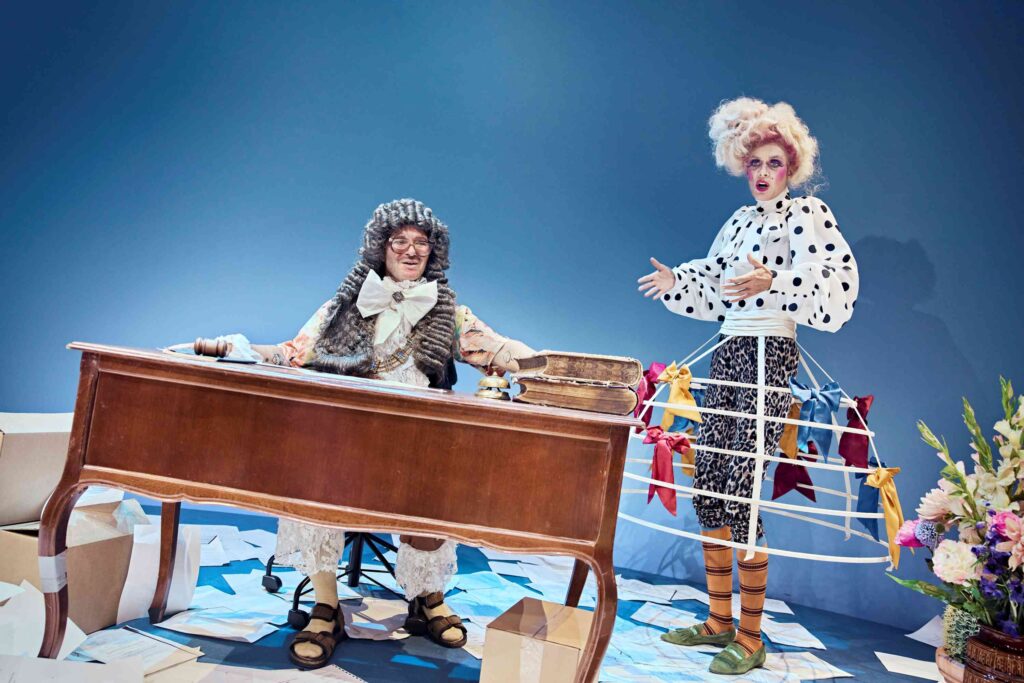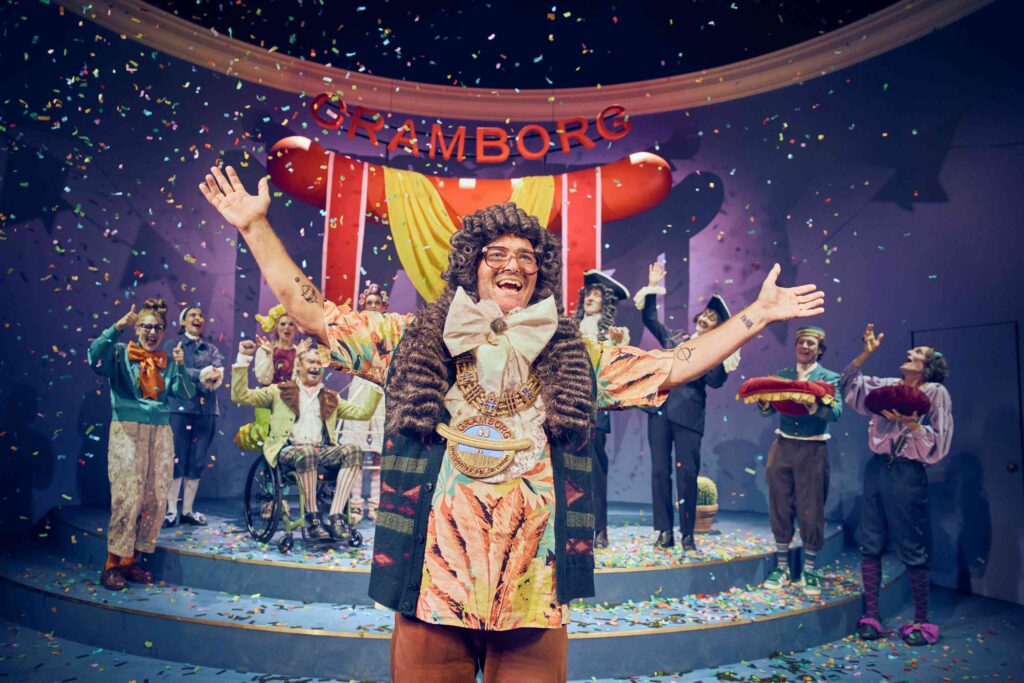 Stine Schrøder Jensen instruerer ganske levende og til tider også ganske fiffig, men hendes iscenesættelse kan dog ikke helt fratage teksten dens noget pjankede natur. Martin Erikssons scenografi og farverige, næsten cirkusagtige kostumer hjælper heller ikke just på det.