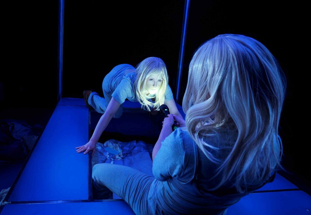 Måske var der netop en pointe i denne uklarhed, men i så fald fik jeg den i hvert fald ikke med, og dynamikken mellem Gry og hendes sabotør kunne generelt være udforsket langt mere både i Josephine Eusebius’ tekst og Johan Klint Sandbergs iscenesættelse. Meget af tiden fortæller Gry bare, og refererer til en masse situationer, steder og personer, hun ofte selv repræsenterer, men som af og til også gestaltes af sabotøren, uden at man kan ane et gennemgående system eller koncept for denne vekslen.