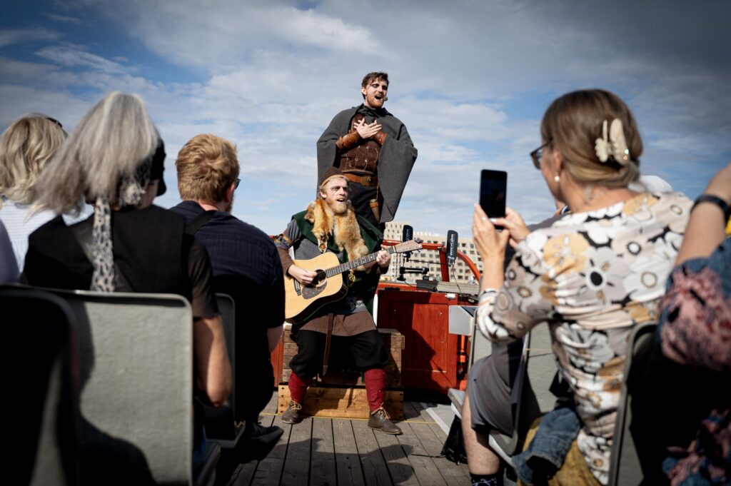 Når man træder ind på kanalrundfartsbåden i de københavnske kanaler, er stemningen allerede sat. Det er tydeligt, at det ikke blot er en helt almindelig bådtur, som alle venter på. Der er nemlig sat vikingeskjold på siden, og togtet er så småt ved at blive sat i gang. Alle i båden venter spændte på at skulle afsted på rejsen med Showbåden: I Holger Danskes fodspor i forbindelse med Copenhagen Opera Festival i samarbejde med Stromma Danmark.