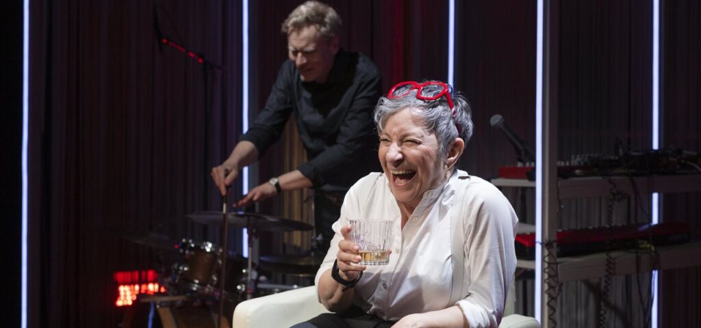 Dette har Off Off/ Produktion ved Ina-Miriam Rosenbaum taget ind i scenerummet. Med sig medbringer hun trommeslageren og virtuosen Emil de Waal, som en slags højre hånd, til at assistere fortællingen.