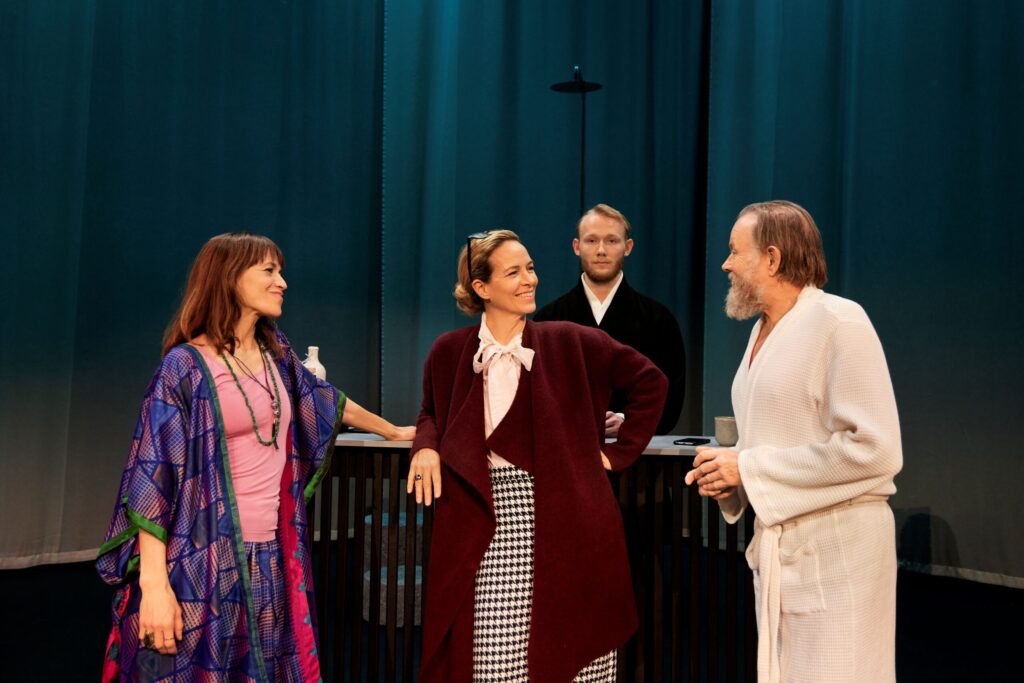 Skuespillerholdet gør, hvad de kan med den lidt svage tekst, og det er i høj grad deres fortjeneste, at forestillingen alligevel kommer i mål. De to par spilles af henholdsvis Camilla Bendix og Jesper Asholt samt af Maibritt Saerens og Karin B. Heinemeier. Alle fire leverer sikre portrætter af deres karakterer, og vi forstår deres handlemønstre. Her bliver der noget menneskeligt.
